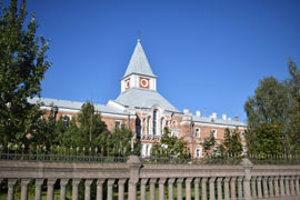 Здание в "русско-византийском стиле" выглядело очень живописно. Особенно хороша церковь в центре, завершавшаяся прямоугольной в плане башенкой с разноцветными изразцовыми крышами, с узорчатым коньком и крестами. Живописен был и силуэт остального здания, с фигурными крышами, башенками, мансардными окошками. В 1899 г. на башне были установлены часы [3].