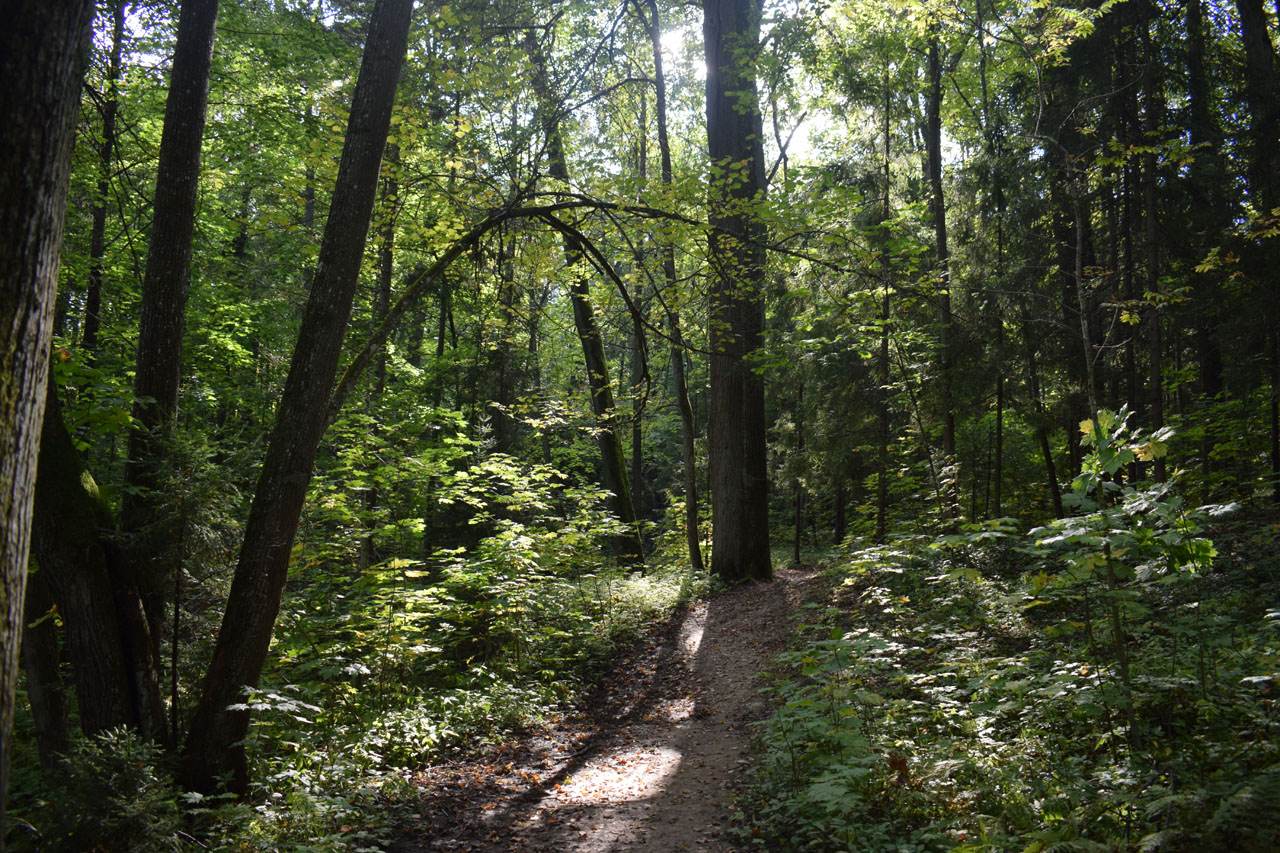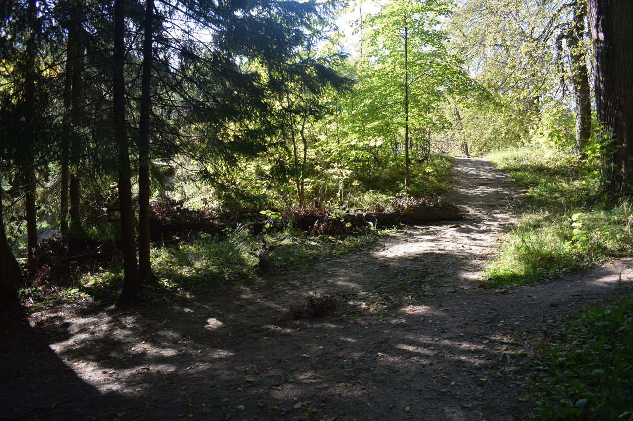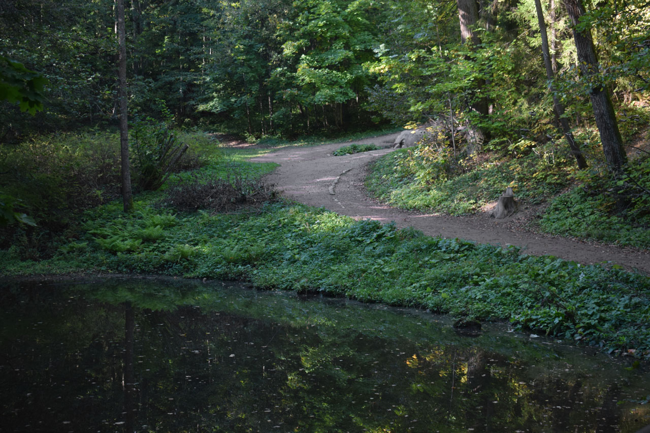Самая впечатляющая часть парка - овраг к западу от дворца, с текущей по его дну речкой Кристателькой, начинающийся от запруды у Большого пруда. Здесь находится и самая известная достопримечательность - каменная голова. Мы пройдем по оврагу вверх по течению.