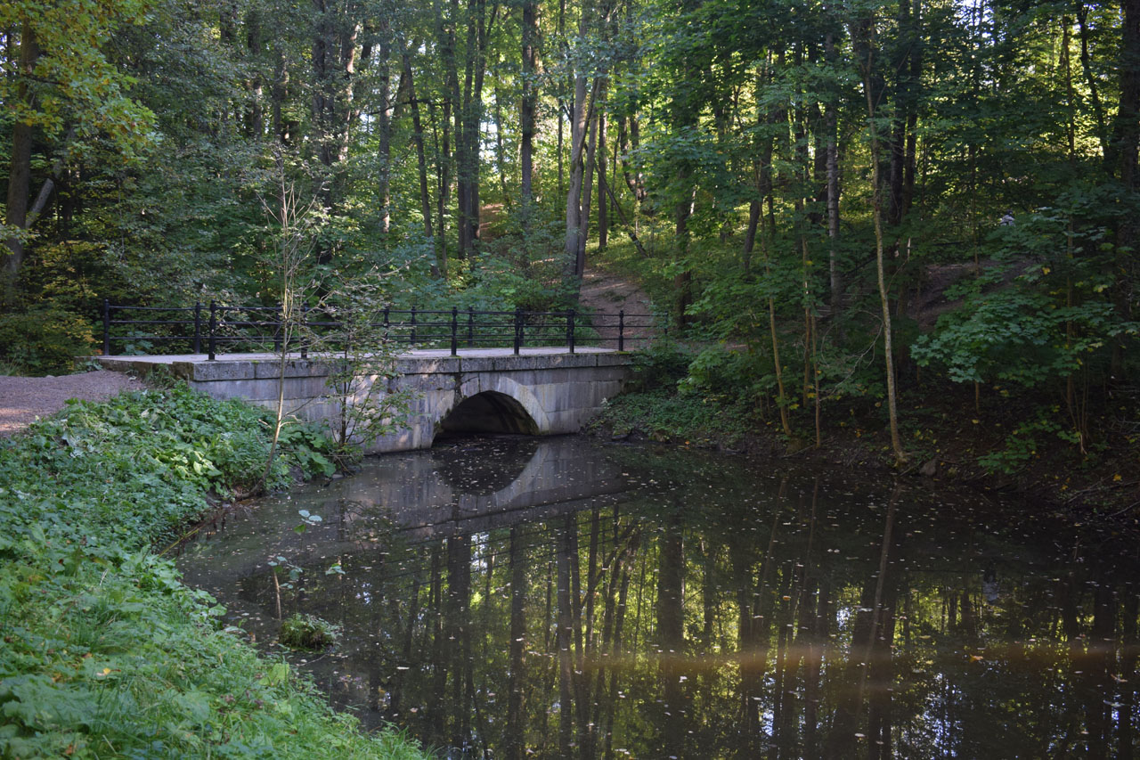 Эта запруда и мостик над ней значительно интереснее по архитектуре. Посмотрим на них: