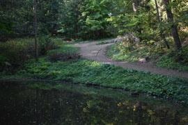 При взгляде вверх по течению впереди видна следующая запруда. Дорога к ней: