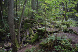 Даже если это и не так, все равно Голова задает "сказочный" тон и всему оврагу, с таинственным темным еловым лесом. Пройдем вдоль оврага вверх по течению.