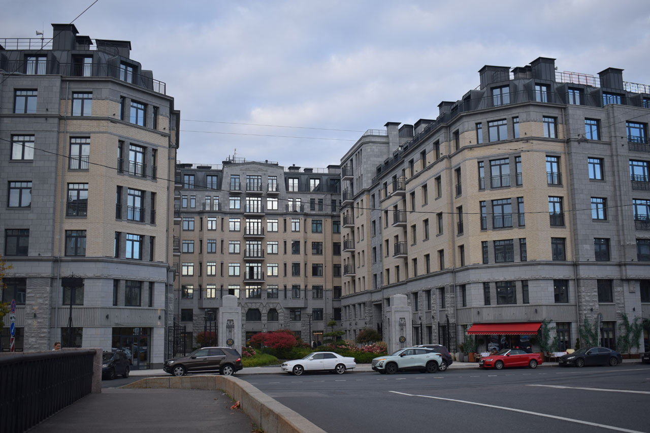От Карповки вдоль Геслеровского проспекта открывается красивый вид на ряд домов начала XX века: