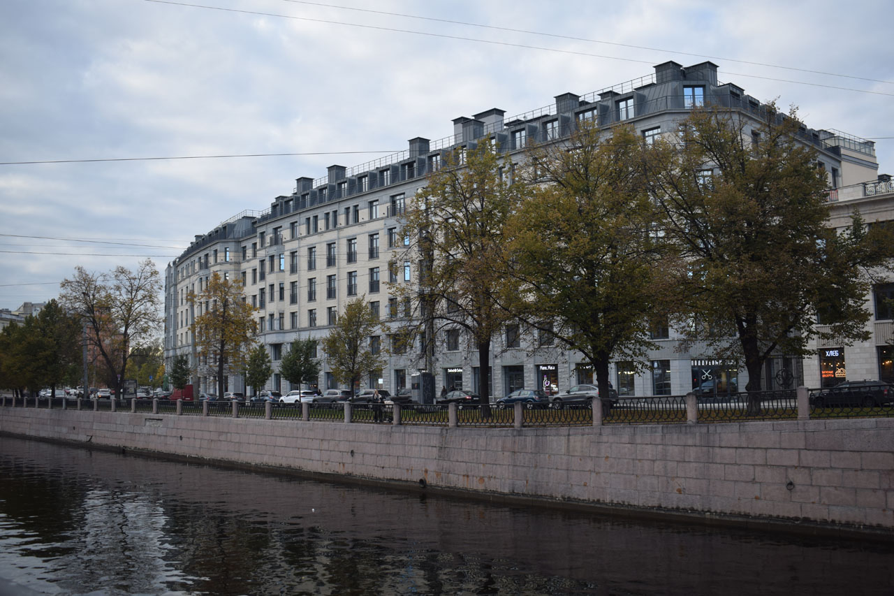 Угловой дом напротив, на левом берегу (наб. Карповки, 14/47):