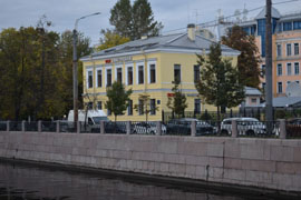 Угловой дом на левом берегу по другую сторону от Силина моста (наб. Карповки, 16/44):